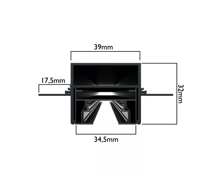 Встраиваемая трековая система серии CITY 2TRA для установки в ГКЛ, натяжной потолок состоит из закладного профиля и трека.